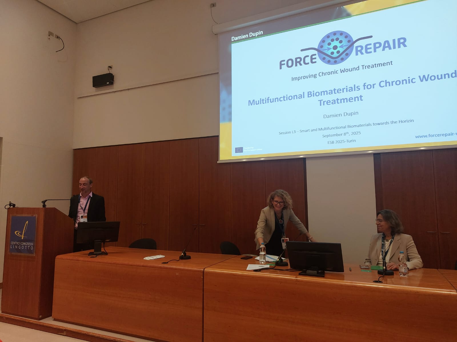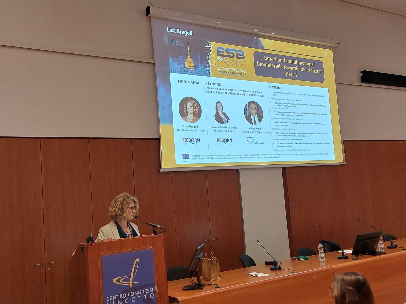 The REBORN project hosted a dedicated symposium at the 34th Annual Conference of the European Society for Biomaterials (ESB 2025), which took place on 7–11 September 2025 at the Lingotto Conference Center in Torino, Italy. The event gathered experts and researchers to discuss how multifunctional biomaterials are tackling major clinical challenges. The symposium was structured in two sessions, each highlighting Horizon Europe projects that are advancing innovative solutions for patient care.